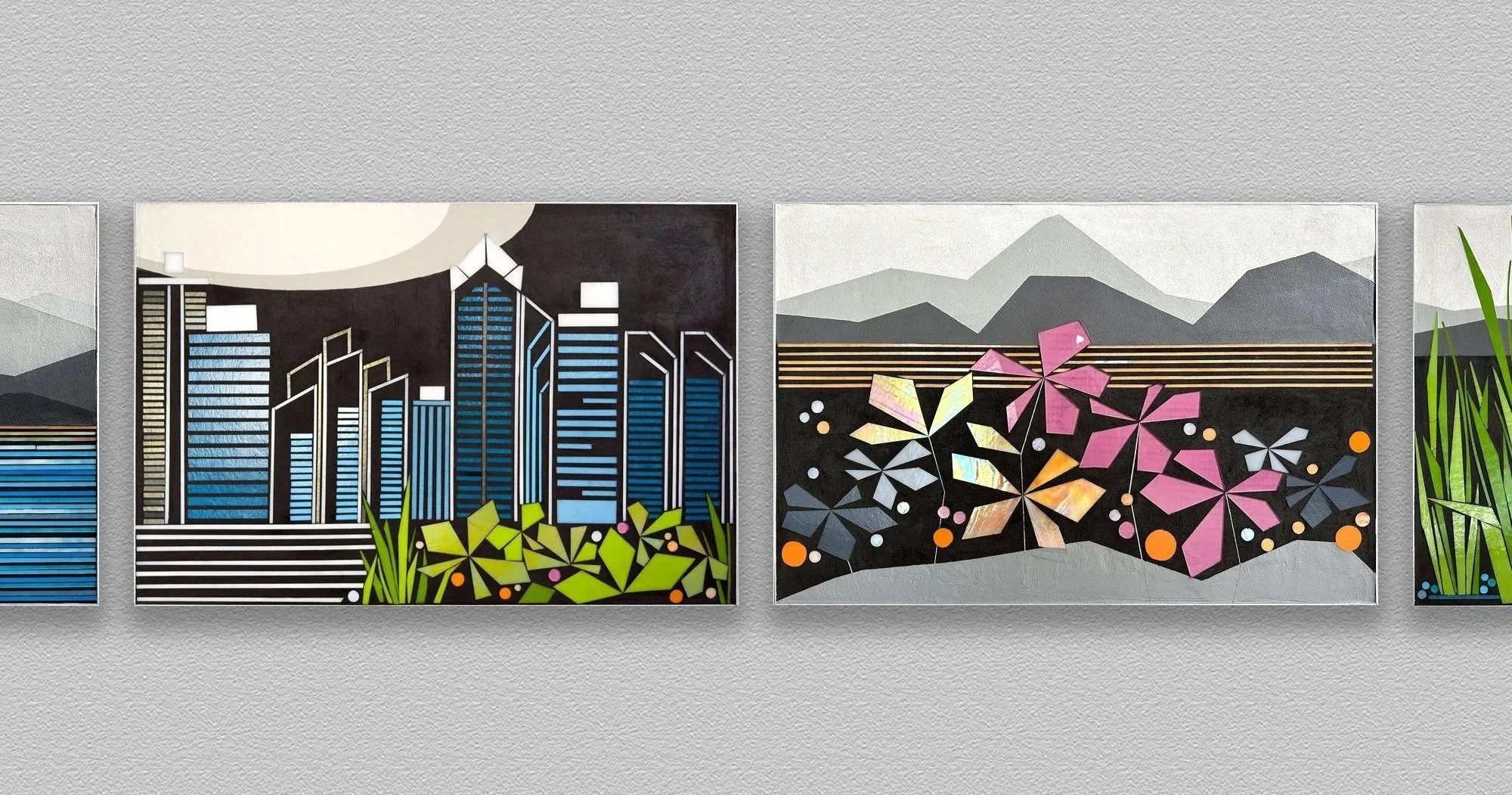 Her aesthetic blends clean-lined urban minimalism with abstracted biophilic references, distilling structure, information, and natural forms into compositions that feel both contemporary and timeless. Commissions can draw from Heather’s established series or be developed as site-specific concepts, offering flexibility in palette, contrast, and scale—from intimate panels to multi-panel wall installations.
