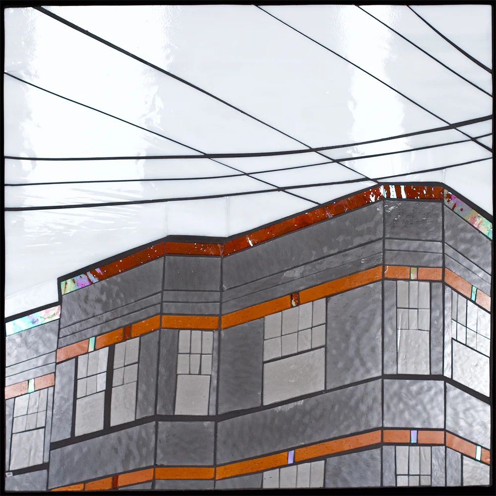 In View, I explore the rhythm and spare beauty of urbanscapes. Power lines create criss-crossed frames of sky and the architectural elements of familiar Evanston facades offer variation in line and form.