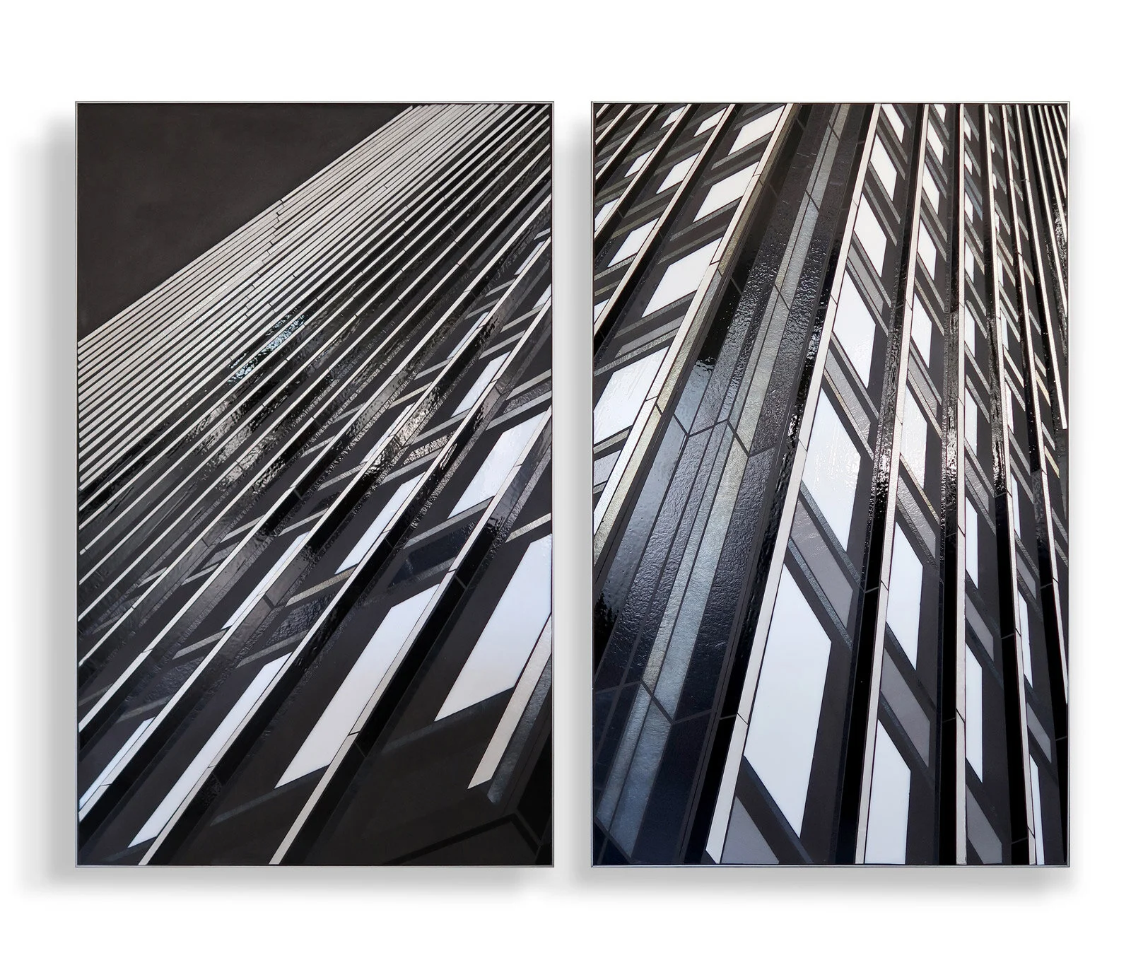 These urban abstractions are inspired by our everyday experience of moving through the city. Light and shadow play across architectural surfaces offering moments of surprise and discovery. I am inspired by the vibrancy and information I notice in the world around me. The fluidity and constant transformations in the natural world contrast with the predictable segments and hard transitions I find in the cityscape. Light connects these two worlds, bringing both clarity and complexity to the everyday.