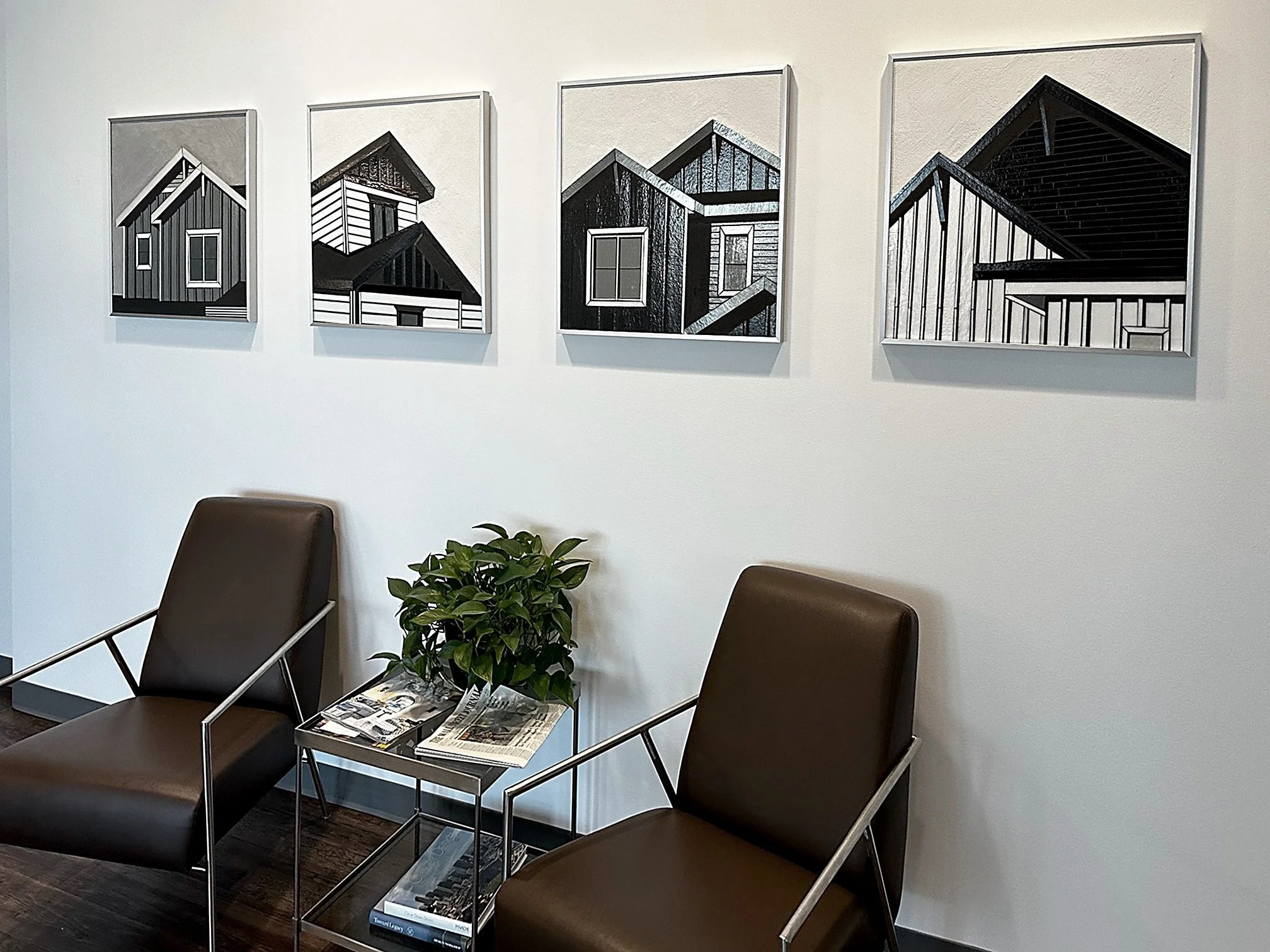 A series of four REFLECT works was commissioned for the lobby of a Denver-based residential developer, translating architectural identity into a cohesive installation.